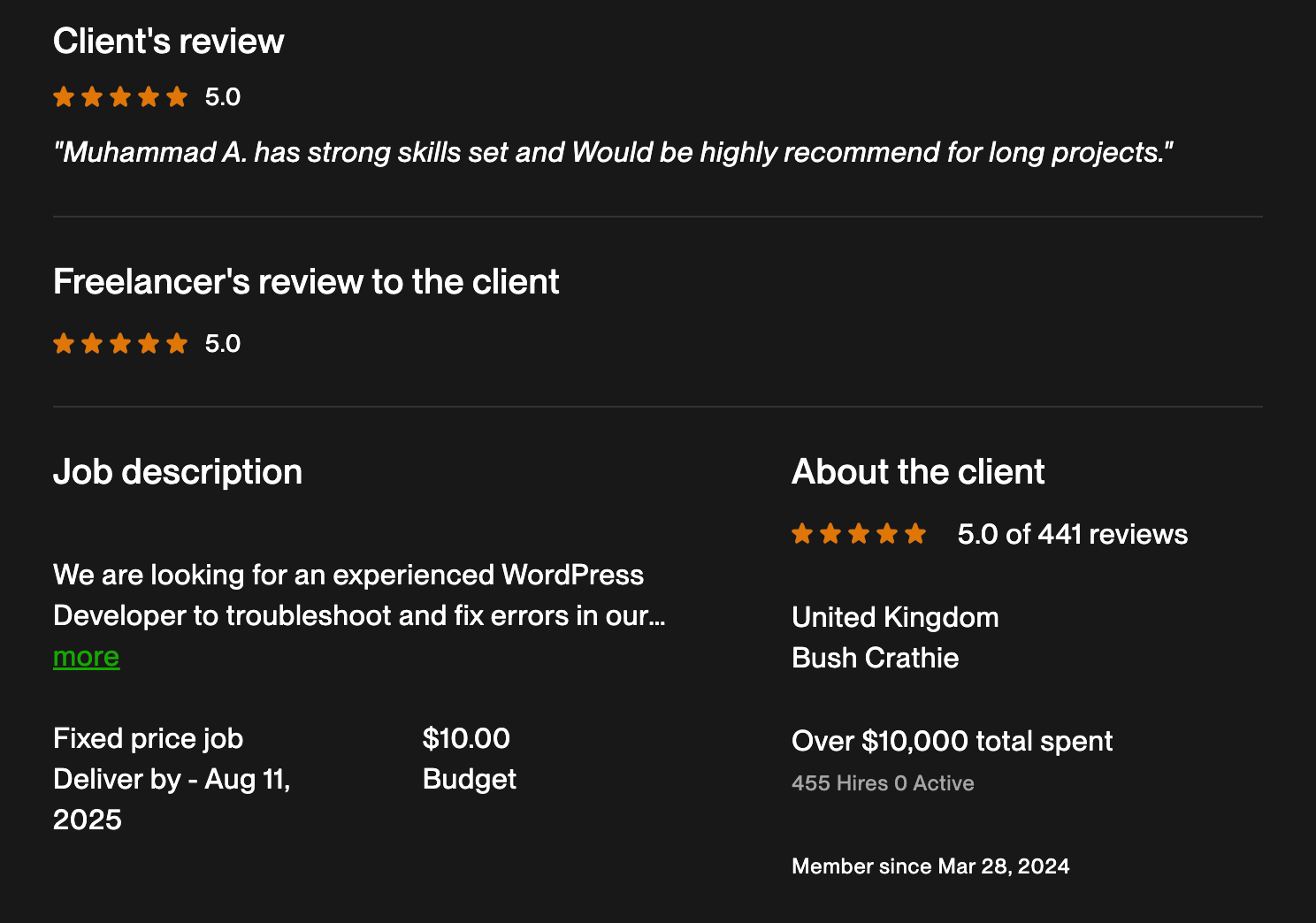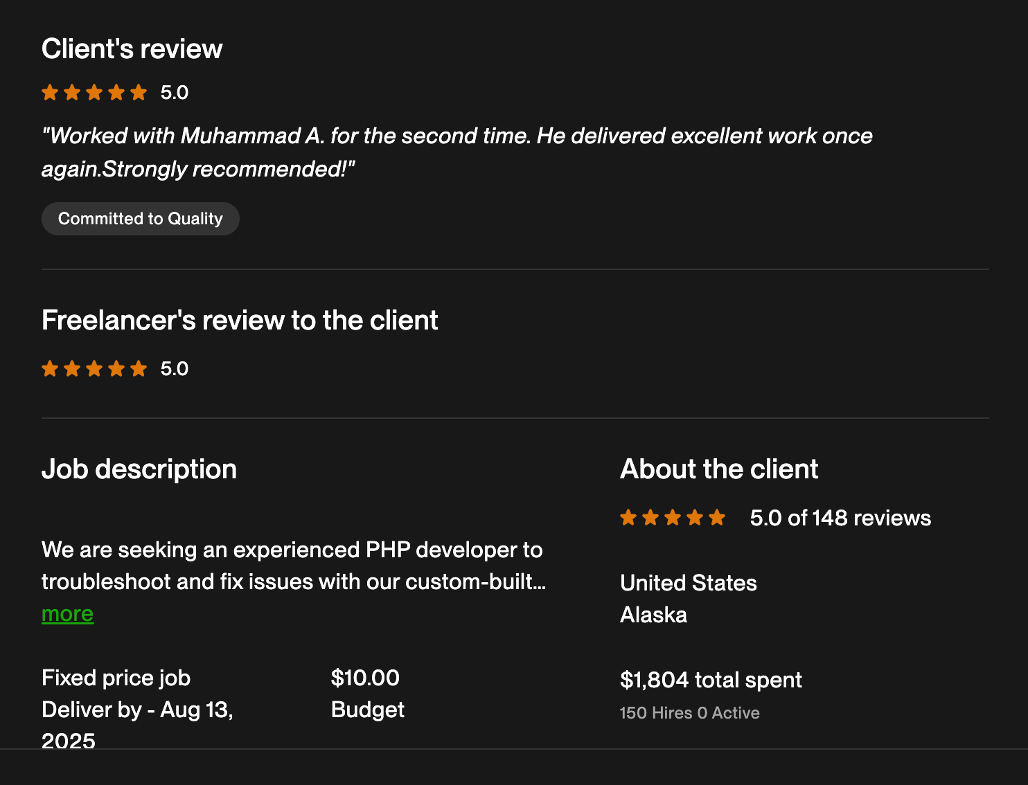 Muhammad A. has strong skills set and Would be highly recommend for long projects