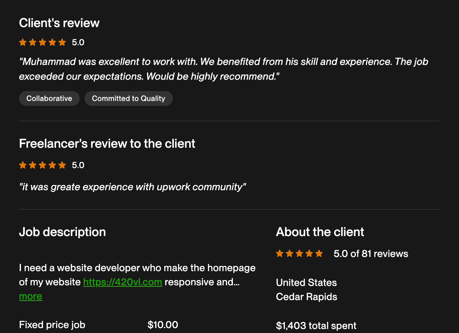 Muhammad was excellent to work with. We benefited from his skill and experience. The job exceeded our expectations. Would be highly recommend